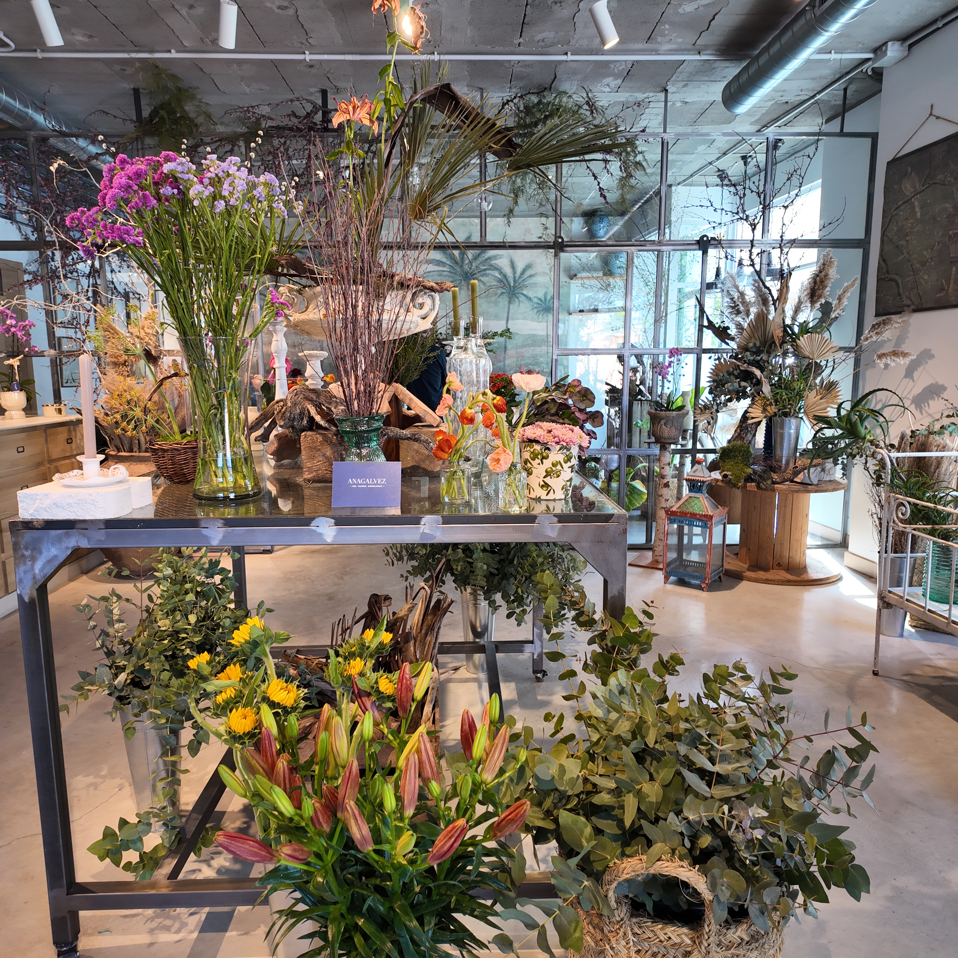 Es una combinación de todo. Depende mucho de la temporada, y el clima influye bastante porque las flores son muy delicadas. En épocas de calor, por ejemplo, no se pueden colocar flores naturales en la parte exterior del negocio. Siempre hay que encontrar un equilibrio entre varios factores: el diseño, el propósito del escaparate (si está pensado para la venta, como exposición o para un proyecto de paisajismo), el tipo de flor que puede resistir al clima, y por último, la venta, es decir, qué puede atraer la atención del cliente. Para mí, el escaparatismo es casi una ciencia; requiere reflexión y estrategia. No es algo sencillo: se trata de lograr un equilibrio entre esos tres elementos clave.